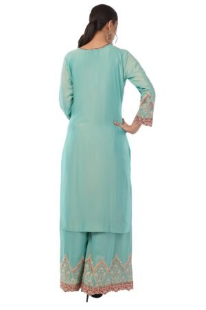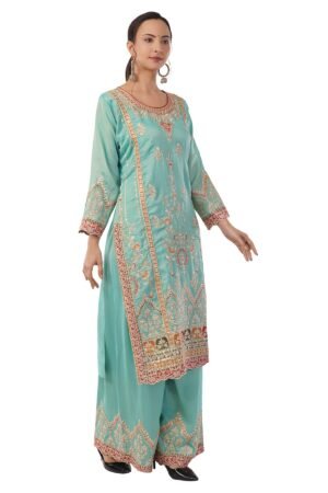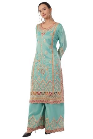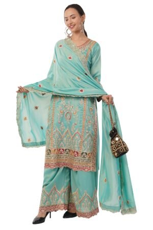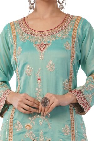 • SET CONTENTS: Complete 3-piece ensemble includes embroidered kurta, matching sharara pants, and coordinating dupatta