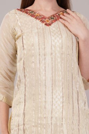 • DESIGN ELEMENTS: Three-piece ensemble featuring a stylish kurta, comfortable bottom, and ornate Banarsi dupatta