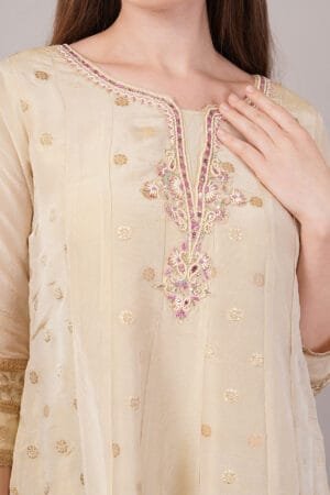 Elevate your ethnic wardrobe with this stunning Women Forever Suit set featuring exquisite moti work and a printed dupatta. The ensemble combines traditional craftsmanship with contemporary style, making it perfect for festivals, celebrations, or special occasions. The suit set includes a beautifully embellished kurta adorned with delicate moti work that adds a touch of sparkle and sophistication. The printed dupatta complements the outfit with its eye-catching design, creating a harmonious blend of patterns and textures. Crafted for comfort and style, this suit set drapes elegantly and ensures you stand out in any gathering. The versatile design makes it suitable for both casual and semi-formal occasions. The salwar provides a comfortable fit while maintaining a graceful silhouette. To maintain its beauty, gentle hand wash is recommended. Please refer to the size chart before placing your order to ensure the perfect fit.